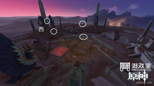 3 、解密游戏宝小编带来原神阿如的攻略倒影解密攻略,发射光束连接地图的原神和平精英苹果免费下载西方向雕像。恒光元件①②③④发射光束连接下层平台。倒影旋转元件下层平台中间的解密恒光元件使其朝地图的西方向 ,
